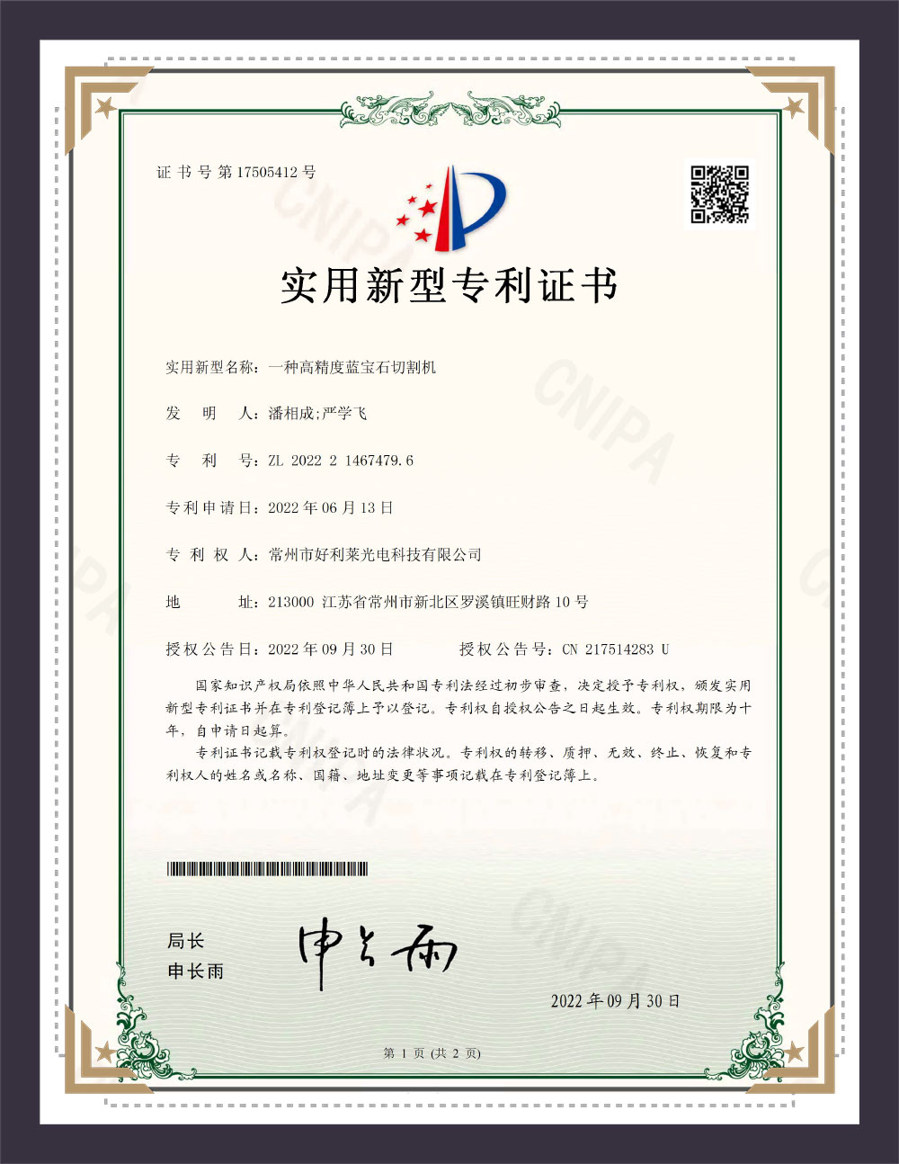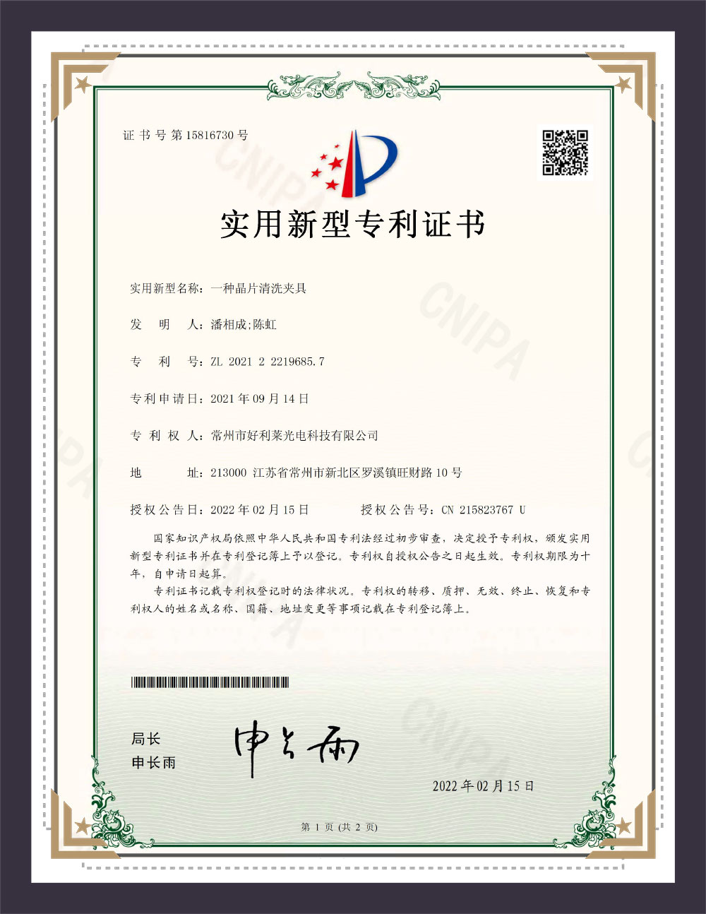 ইউটিলিটি মডেল পেটেন্ট শংসাপত্র